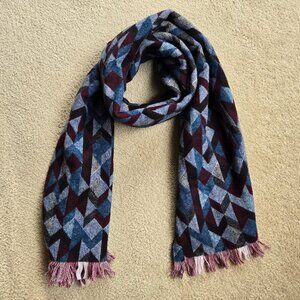 The fabric content tag has been removed but this scarf is 100% wool. Excellent condition--like new. No damage, no flaws, no pet hair, no odors.