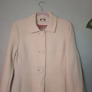 J Crew Wool Silk Lined Off White Classic Collared Button Down Retro Pea Coat 12