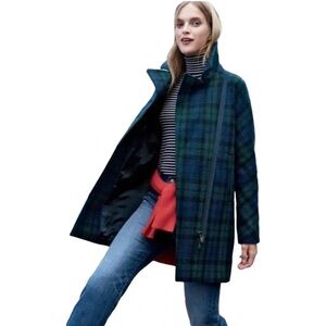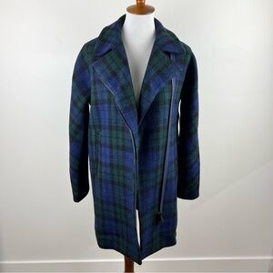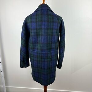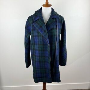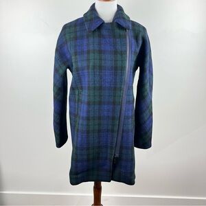 J. Crew Wool Zippered Coat Black Watch Tartan Size 4 Classic Academia Peacoat