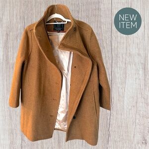Mint condition practically brand new. J Crew wool coat in camel. Timeless color and cut, 12p but runs large for a roomier fit. Could definitely size down and still effortlessly look chic.