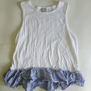 J Crew Woven-hem tank top cotton in good condition size small white with stripped riffle hem