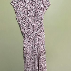 J Crew maxi wrap dress in a size extra small. Dress has quarter length sleeves. Pink, black and white cheetah print.
