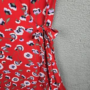 J Crew Wrap Dress Womens 2 Red White Floral V Neck Short Flirty Tie Colorful