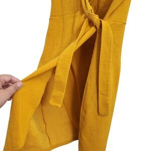 J. Crew Wrap Dress Womens Small Yellow Mustard Textured Knit Short Sleeve V-Neck