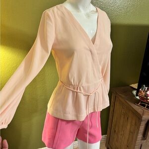 This J. Crew blouse features a chic wrap design with a flattering peplum waist, crafted in a vibrant orange hue. The long sleeves and V-neckline add a touch of elegance, making it a versatile addition to any wardrobe. Its lightweight fabric ensures comfort and style for any occasion. Fairly used and in great condition! Open to offers