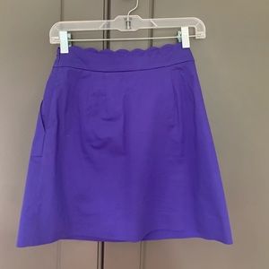 J. Crew women’s size 2 Scallop Top Mini Skirt in purple. Super cute and work appropriate. Worn once. Has pockets, too!