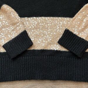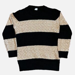 J. Crew Wynter Sequin Pullover Sweater Black Tan Stripe Crew Neck Small