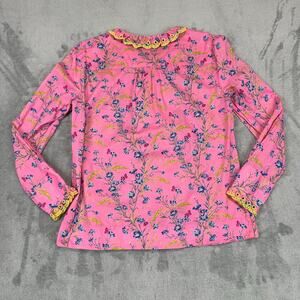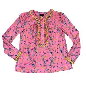 J Crew X Liberty Fabrics Size XS Pink Cotton Poplin Ruffle Blouse Wheat Bouquet