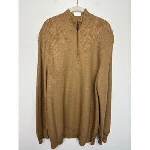 J Crew XL Cotton Honeycomb Knit Half-Zip Heather Acorn Pullover Long Sleeve
