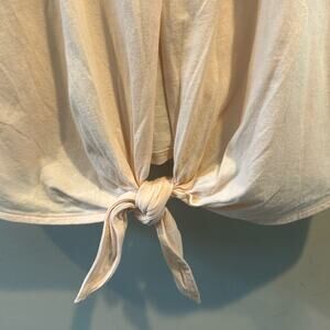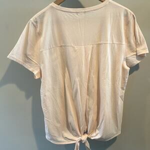 Excellent pre-owned condition, no flaws, J. Crew short sleeve tee. Women’s X-large. From the front this top is a basic crewneck tee in light pink. Details on the back of the tee include a knotted tie at the bottom and an opening that can be left as open as desired. Such a fun and unique design, very beachy and summery. Simple and classic summer closet staple, very versatile to style with sneakers for a casual look or elevate for business casual or date night.