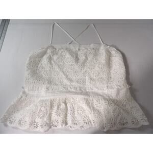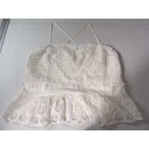 J. Crew XXL Eyelet Tank Top Cropped White Ruffle Prairie Cottage Core Strappy