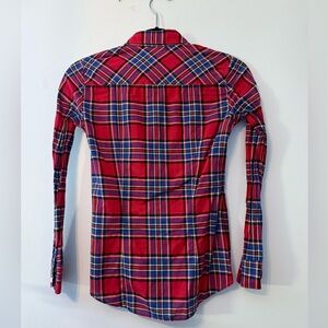 J Crew XXS Petite button up plaid cotton shirt Red
