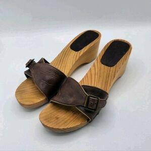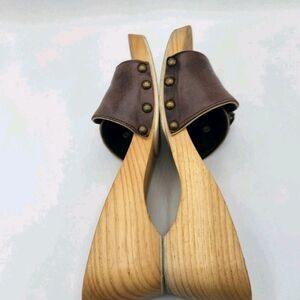 J. Crew Y2K 90s Brown Leather Wooden Open Toe Clogs Sandals Women’s Size 10