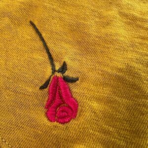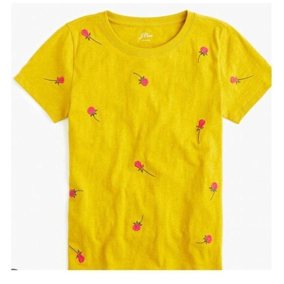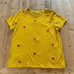 J. Crew Yellow Gold Short Sleeve T Shirt with Hot Pink Roses Size XL