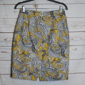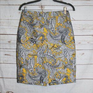 J. Crew Yellow Paisley Pencil Skirt Size 2