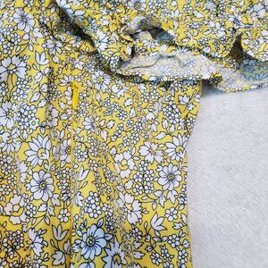 J. Crew Yellow White Black Floral Tiered Cottagecore Romantic Dress Women XXL