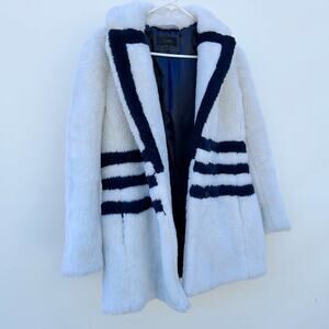 J. Crew Yuma Teddy Sherpa Trench Striped Fuzzy Cream Navy Coat Jacket XS