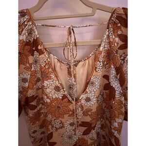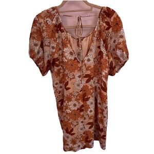 The J. Crew Zinnia Floral V-Back Linen Mini Shift Dress in earthy tones is a versatile and stylish piece perfect for various occasions such as travel, parties, or workwear. The floral pattern in a multicolor palette exudes a Bohemian or preppy vibe, making it a classic choice for the summer, fall, or spring seasons. Made of 100% linen and 100% cotton, this lightweight , lined dress features a V-back with hidden buttons, puffed sleeves, and a tie detail at the back neck. Easy to care for with machine washable instructions, this dress is a must-have for women looking for a fashionable and comfortable option. It’s nee, but the tags were removed. It’s in excellent condition, from a clean, smoke-free home.