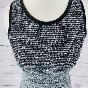 J. Crew fit and flare dress. Black and cream woven, textured, and stretchy material. Rear zipper with hook and eye. SIze 00
