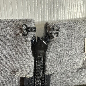 Gorgeous J. Crew dress, size 6. Scuba type material with stretch - very figure flattering and supportive. Black and gray, hidden back zip, hook and eye closure. Seam at waist.