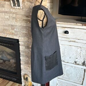J Crew black label faux leather pocket wool blend shift dress charcoal gray zip