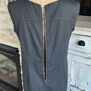 J Crew black label wool blend charcoal gray shift dress w faux leather pockets and back zip closure. Lined.