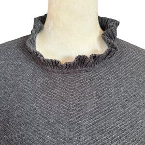 Women's J. Crew black long sleeve ribbed pullover sweater, size XS. This is stretchy and has a ruffle neckline. Excellent like new condition and from a smoke free pet free home. Quick shipper!