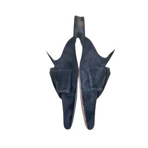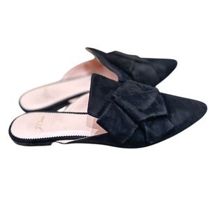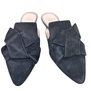J crew black suede slip on mules with a unique bow knot design. Perfect for casual wear. Euc