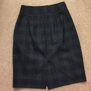 EUC J. Crew blackwatch tartan pencil skirt. Three buttons and hidden zip at front. Slight A-line shape and falls to knee. Unfortunately, selling because too small for me now.