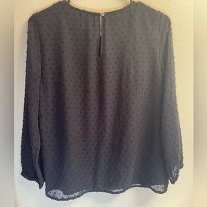 J. Crew blouse size 0 Navy blue with dots/ruffles. Pit to pit 18” Length 20” 100% polyester Open to offers!!