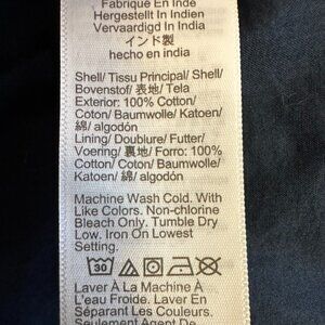 J. Crew short sleeve , belted, midi dress with blue and white pattern. The dress skirt is lined with a soft dark blue fabric. All fabric is 100% cotton.