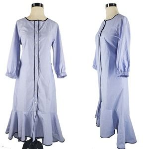 J. Crew blue high low button front ruffled bottom midi shirt dress. B228