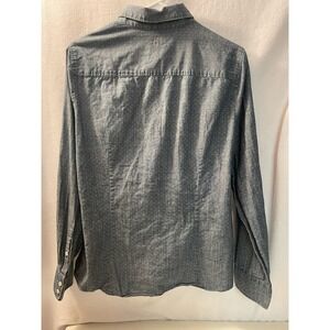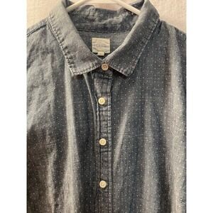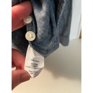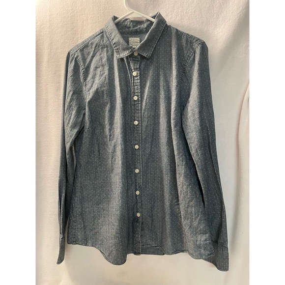 J. Crew blue jean denim white dots button up womens long sl Large casual shirt