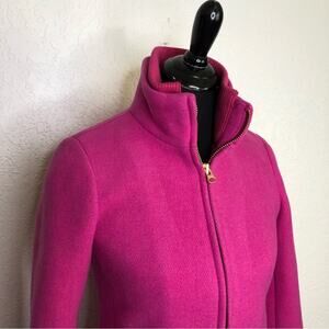 J Crew bright pink Italian Stadium Cloth by Nello Gori full zip wool coat size 0