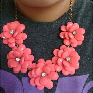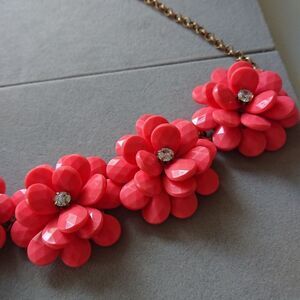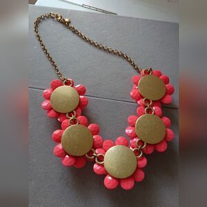 J. Crew bright pink acrylic with rhinestones statement necklace