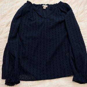 J. Crew navy blue blouse and pullover sweater, both in good condition.