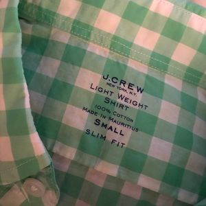 Women's green and white gingham light weight button down, slim fit, color looks great on all skin tones and in great condition