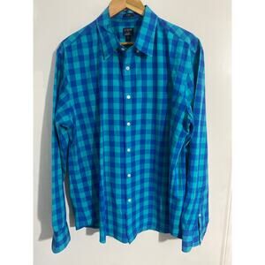 J Crew button down shirt men’s XL blue plaid cotton slim flex washed casual