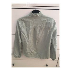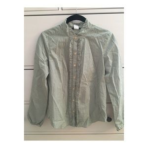 Green and white striped J. Crew long-sleeve button up top. Great condition.
