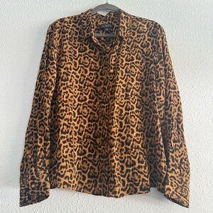 J. Crew button-up shirt in leopard crepe de chine Blouse Top Size XL