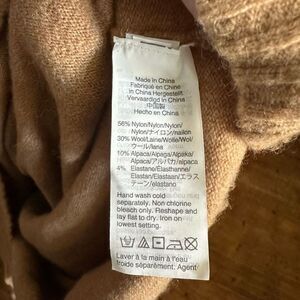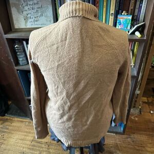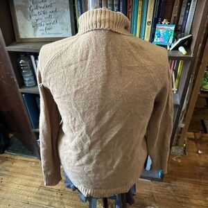 J Crew camel colored, cowl neck, wool/alpaca blend, pullover, classic sweater. Pairs well with slacks or jeans. Approximately 20 inches from armpit to armpit, 25 inches long. In good, used condition. From a pet and smoke free house.