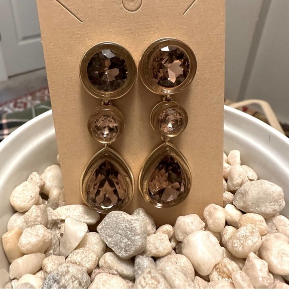 J Crew - chandelier earrings, rose gold look with pink champagne stones