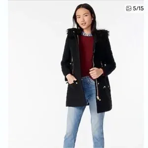 we're not talking about the forecast. Our best-selling parka has a swingy A-line shape and is made from our exclusive stadium-cloth wool, created especially for us by Italy's Nello Gori mill (inspired by old-school stadium blankets, it adds warmth without bulk...and we've used it in our collection every year since 2006). It's too hard to pick our favorite detail so here are three: removable faux-fur trim on the hood, zip-closure and button-front pockets, and a locker loop chain so you can hang your parka up securely when you come in from the cold.