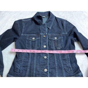 J Crew's classic blue denim jacket for women in size medium offers timeless style with a perfect fit. Crafted from durable, high-quality denim, it's versatile for any casual occasion.