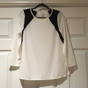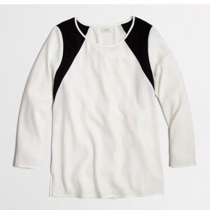 Beautiful color block blouse from j Crew. Black and ivory, long sleeve, excellent condition. Size 0 Sm bust measures 18 inches across. $79.50