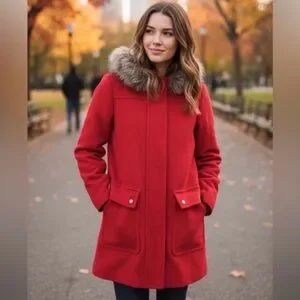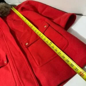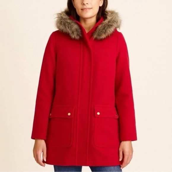 J. Crew cottagecore wool blend Red hoodie Pea Coat with Fur Hood size 10