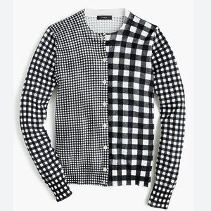 J. Crew cotton Jackie cardigan in gingham black white XL