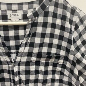 J Crew cotton short sleeve blouse tie black white check gingham lightwei…🌟