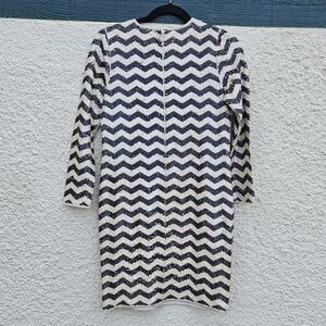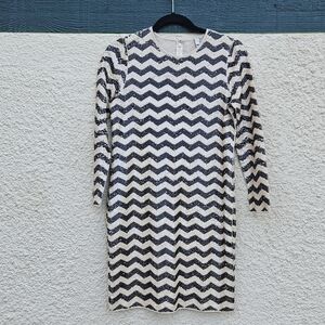 J. Crew cream and black chevron sequin long sleeve mini dress ALTERED XS