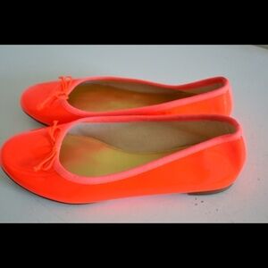 Crew cuts-J. Crew flats! All leather. Made in Italy. Neon orange color. Fits size 6 women's. Few Marks (ink) on right shoe (pic). Other than that these are in new never worn condition!